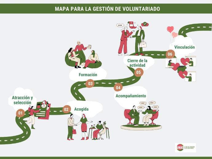 Este mapa es un recurso fácil e interactivo que facilitará la gestión del voluntariado para las entidades de ENLACE, haciendo uso de toda la información de valor, herramientas, modelos y buenas prácticas que ya poseen.