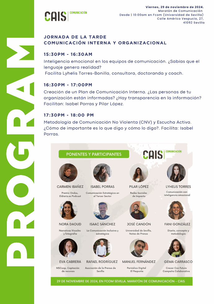 Aquí tienes el programa detallado! Por la mañana dedicaremos la jornada a la mejora de la comunicación externa con la intervención de profesionales del sector.